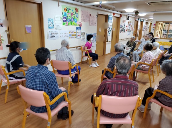 岡庭先生が私達の事業所に来て下さり、私達ケアスタッフに姿勢維持の筋トレ、大腿四頭筋の筋トレを教えて下さり、その後利用者様も一緒にNõAエクササイズをした時の出来事を紹介します。