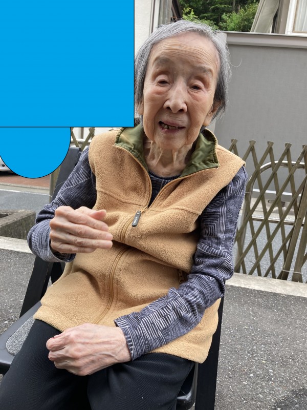 今日はご利用者様を一人連れて玄関前で外気浴をしました。