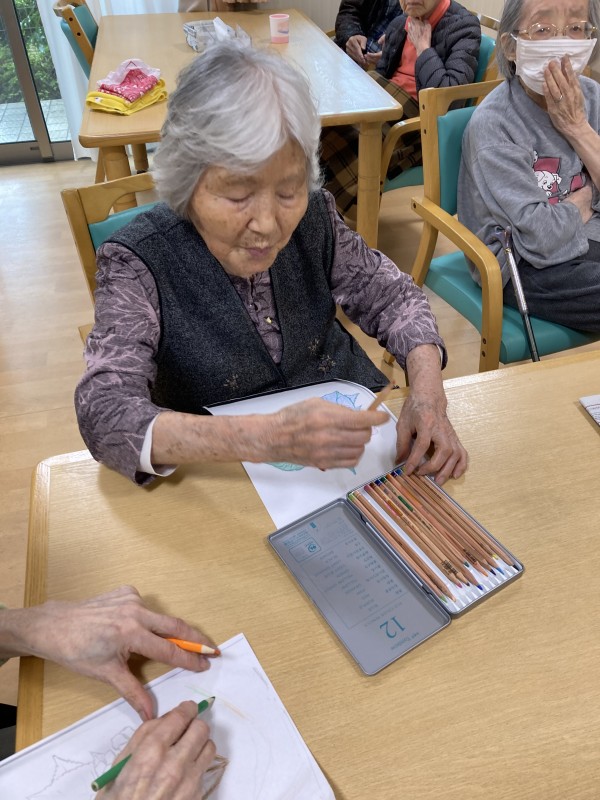 梅雨の季節ということで、本日は紫陽花の塗り絵をして頂きました!
