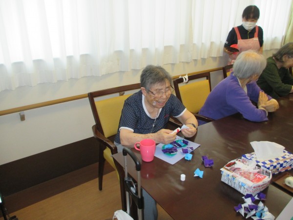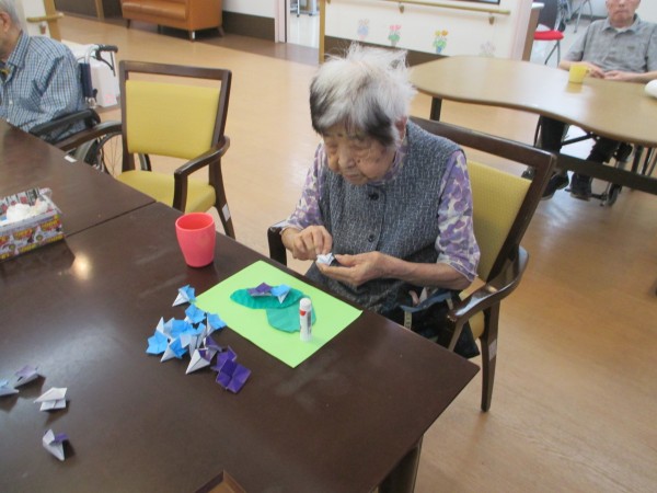 本日レクリエーション「折り紙工作・あじさい」をアップさせて頂きます。 (((o(*゚▽゚*)o)))