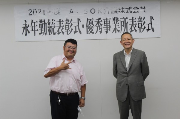 ホーム長は、表彰とは関係ありませんが、宮澤社長と張り切って写真を撮って頂いていたのは