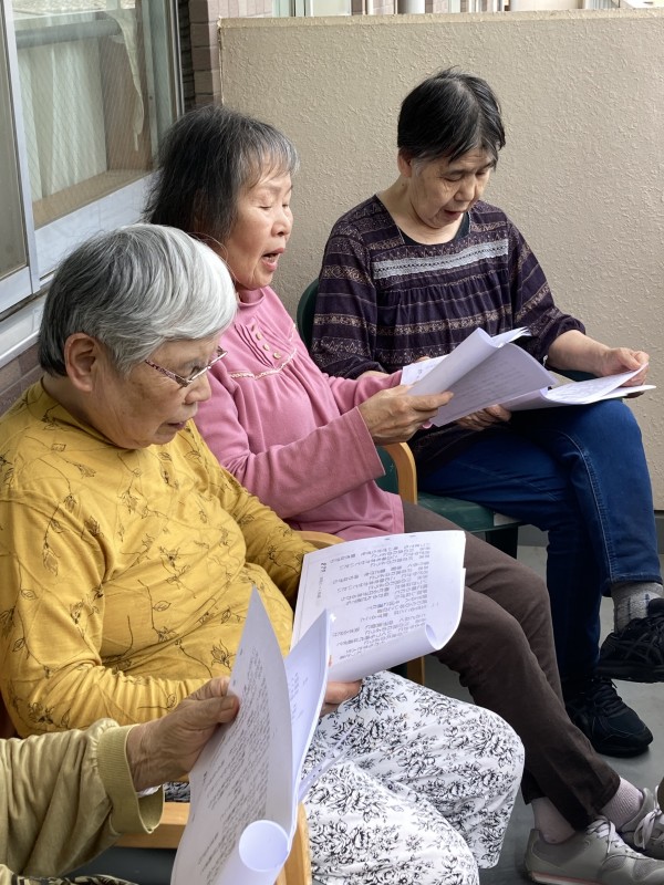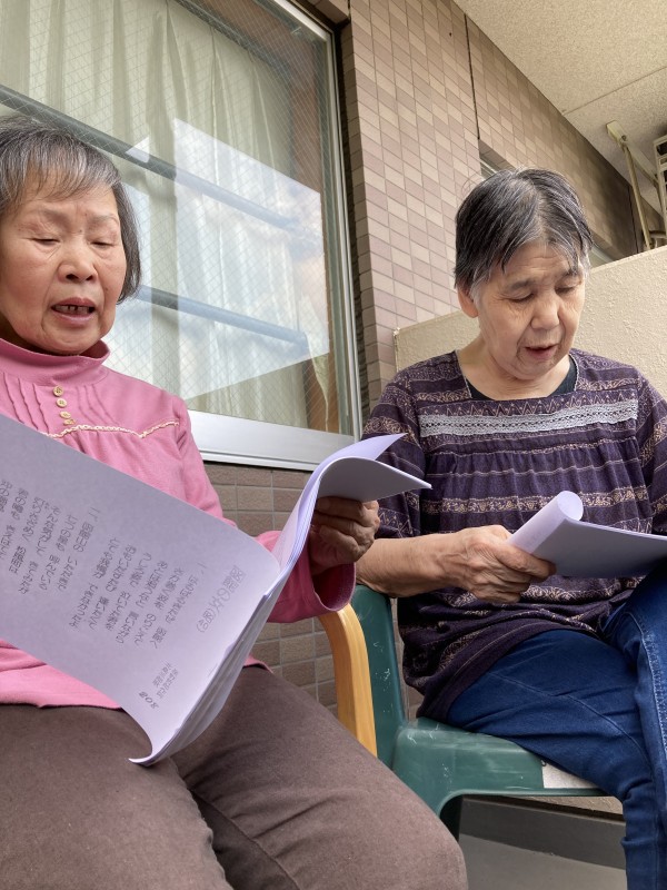 2Fフロアの入居者様はベランダで日光浴と合唱を楽しまれながら