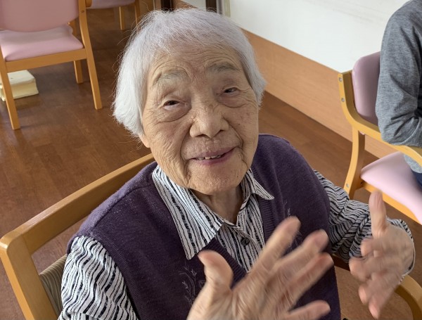 101歳の入居者様が、何かを見つめています。