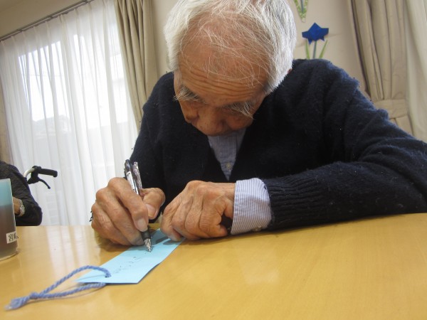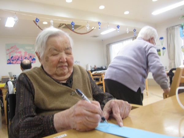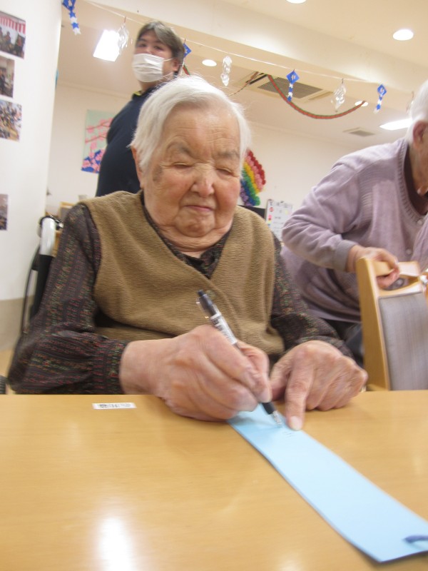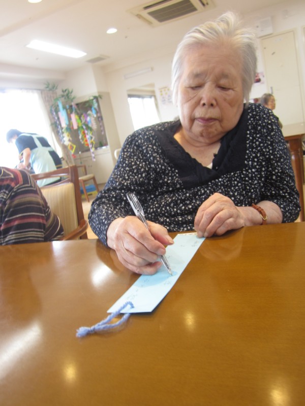 ご利用者様の皆様、職員の皆様と一緒に短冊に願い事を記入するレクリエーションです(^^♪