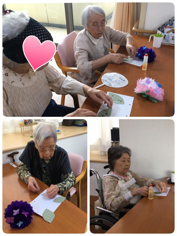 皆様、熱心に台紙に葉っぱを貼り付けていらっしゃいます。