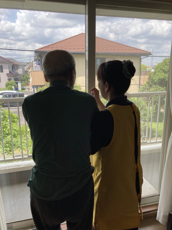 付き添いながら居室へお連れし一緒に窓から外の景色を眺め会話をしていたら、良い気分転換になったのかその後はとても落ち着き職員と談笑して過ごされました。