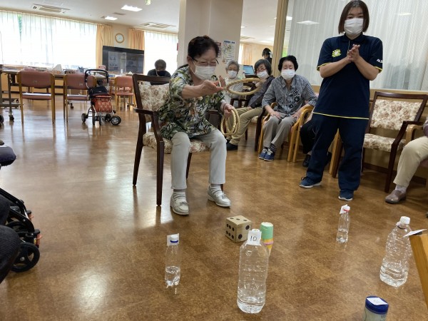 今日のレクリエーションはその名も「ハイパー輪投げ!」