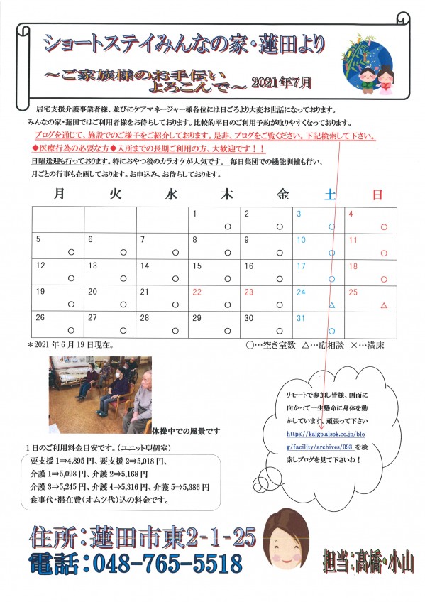 ショートステイみんなの家・蓮田のブログも是非、ご覧ください。