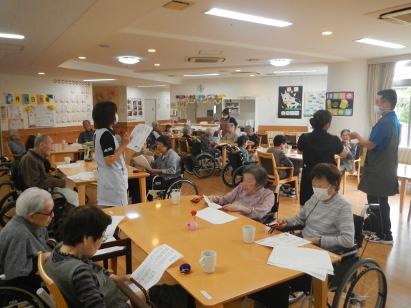 毎日、各階で日替わりのレク担当者が、思考を凝らしたレクリエーションを行っています。