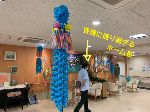 西東京の入り口を入ったら、デイサービスで利用者様と作った七夕飾りがありました。