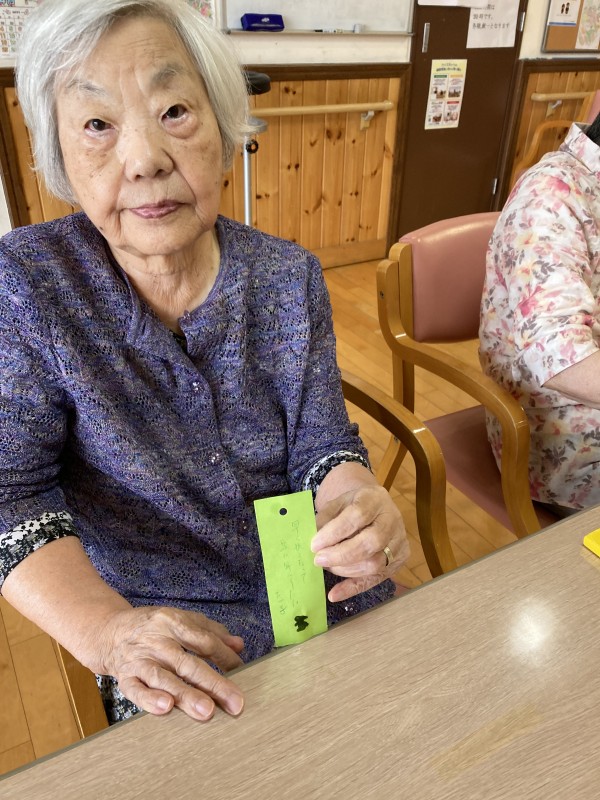 次は、飾りを作ってから大きな笹(竹?)に飾り付けましょうね!