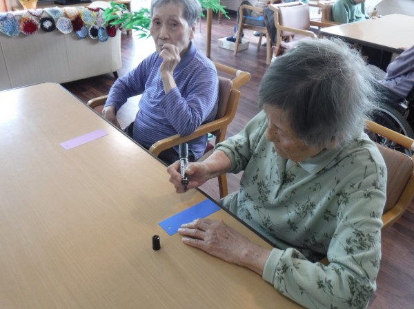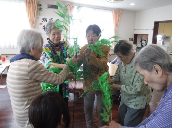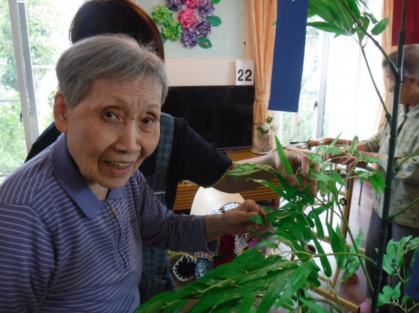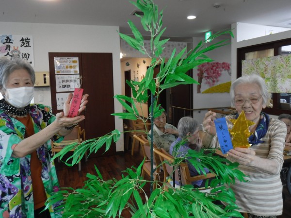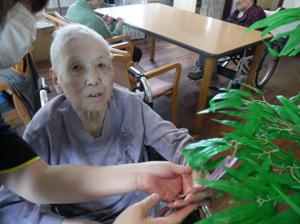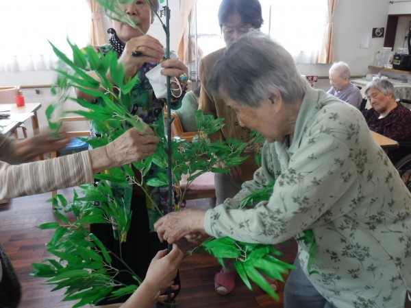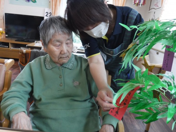 一人ずつ短冊に願い事を書いて枝に下げて頂きました。