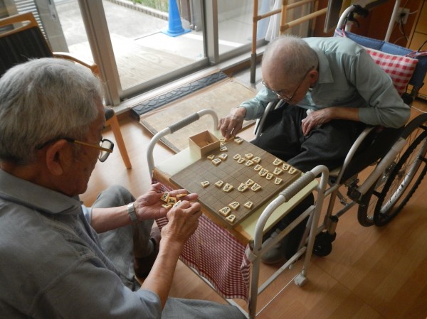 このように、毎日真剣勝負を楽しまれているご利用者様の姿が、ホールのあちこちで見られるのも、みんなの家・北本中丸の特徴です。