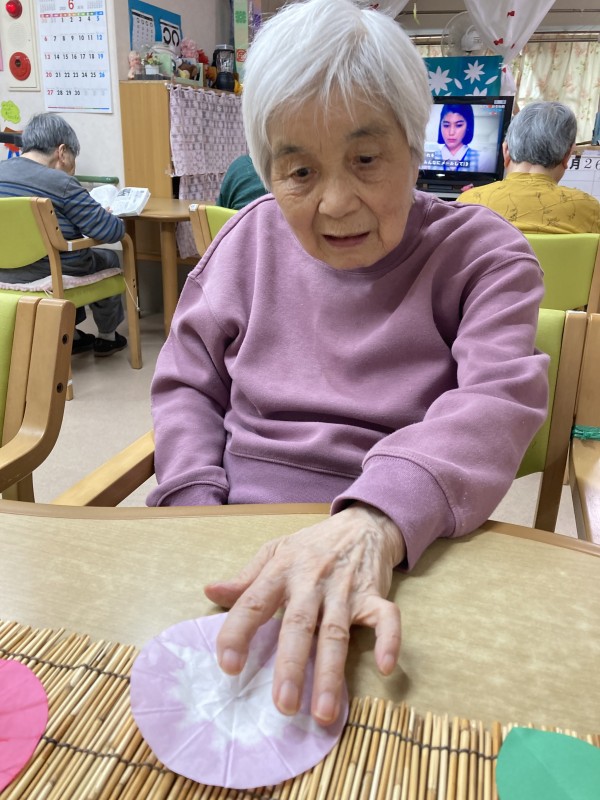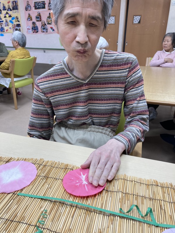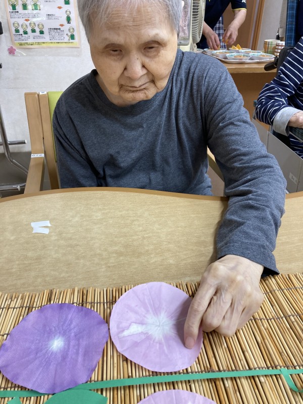 今日は朝顔の壁面飾りを作って頂きました。