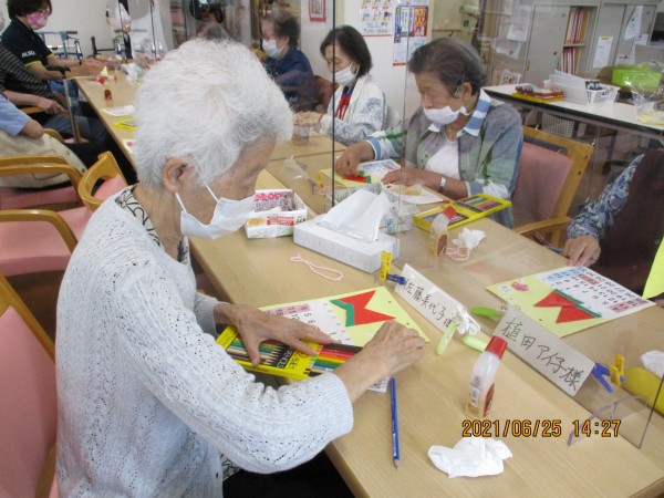 7月のカレンダー作り。スイカやうちわを貼っていきましょう!!