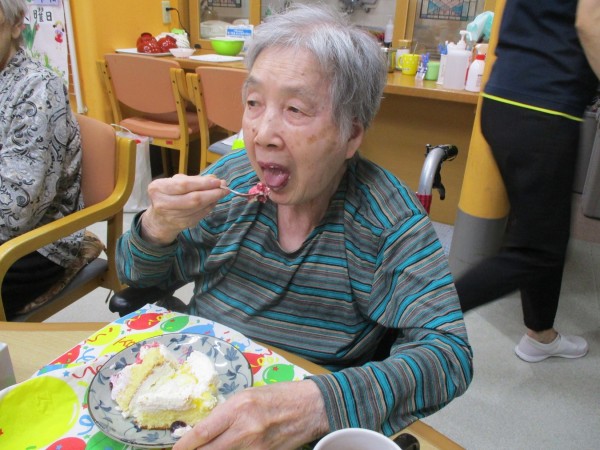 みんなで頂く前に、まずは6月お誕生日の利用者様の為に