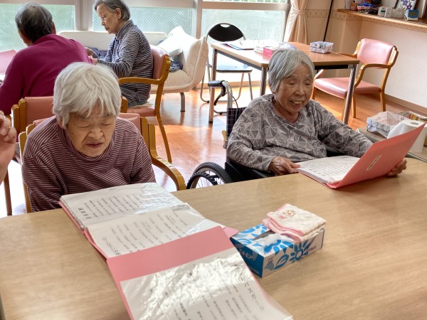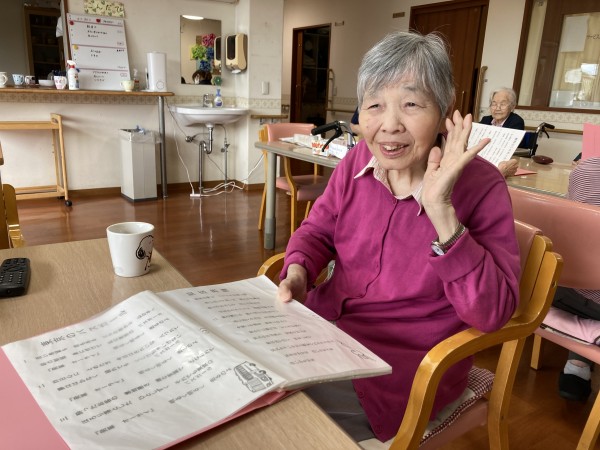 普段なかなか声が出ない方も2Fの利用者様の楽しそうな歌声につられ、しっかりと声がでていました!