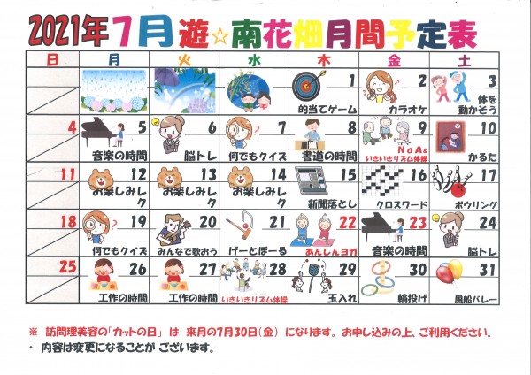 7月も遊・南花畑は楽しい♪って言ってもらえるように