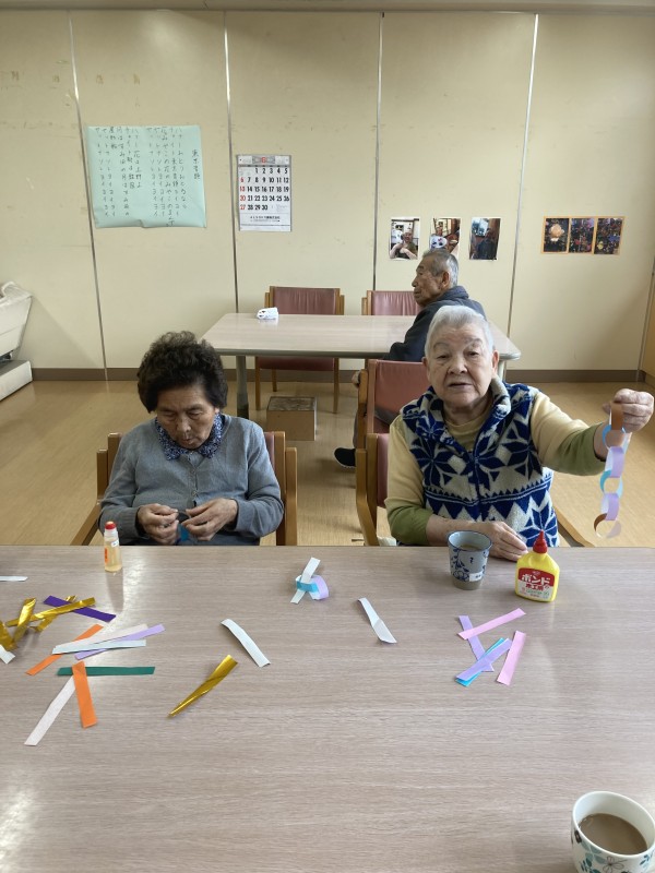 今回は、折り紙でわっかを作り長く長くつなげてました!