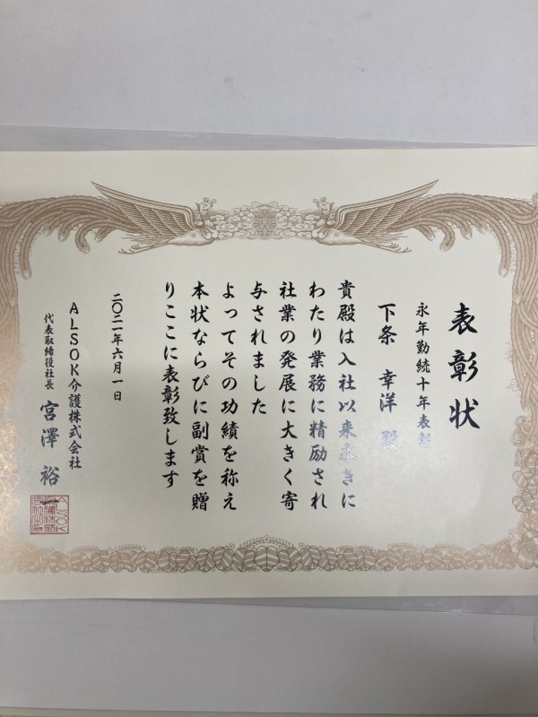 まったくの私事ですが 会社より10年の