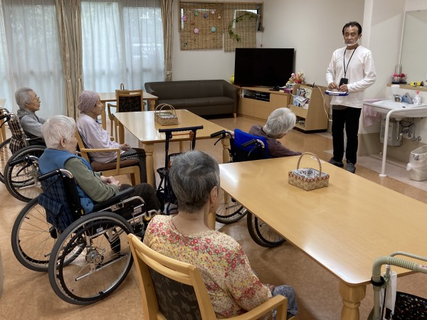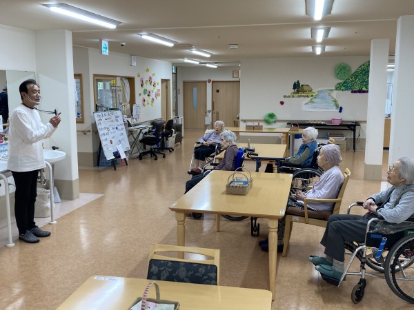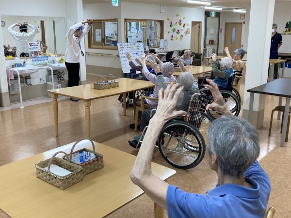 コロナウイルス感染予防で密になるのを防ぐため1階と2階とをわけて開催させていただいたのですが、岡田先生は快く応じてくださいました。ありがとうございます。先生の顔を覚えているご入居者様も忘れてしまった(?)ご入居者様も、楽しそうにNōAエクササイズに取り組んでいらっしゃいました。脳と手足を使って認知症予防に取り組みましょう!