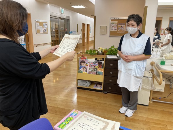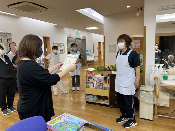 介護付有料老人ホームみんなの家・南中野では3名が出勤中でしたので表彰が執り行われました!