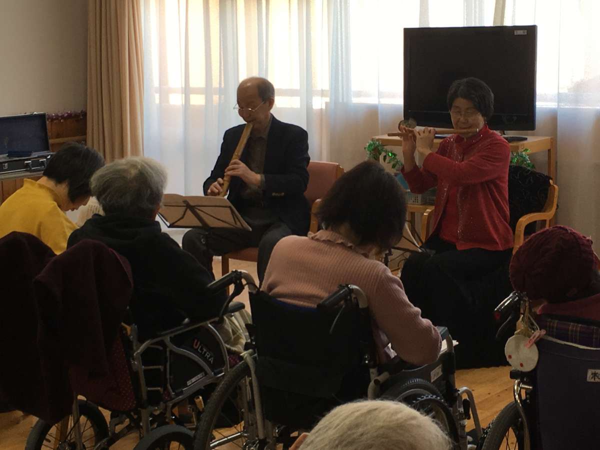 今日のレクは尺八とフルートの演奏で~す。