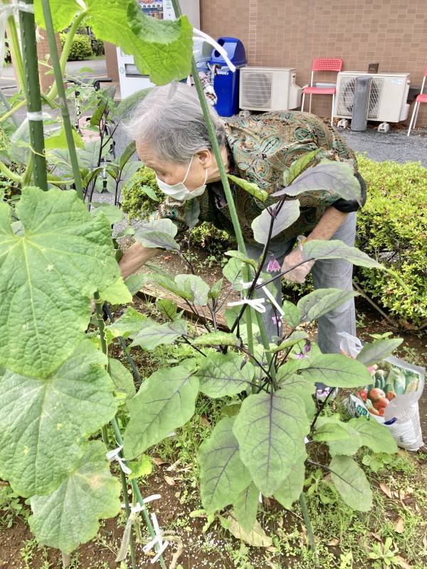 茄子の葉の紫色の色素が少なくなってきましたので、肥料を追肥しました!