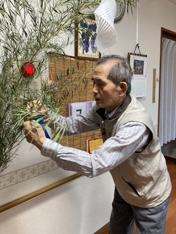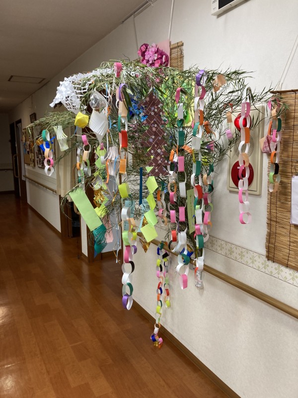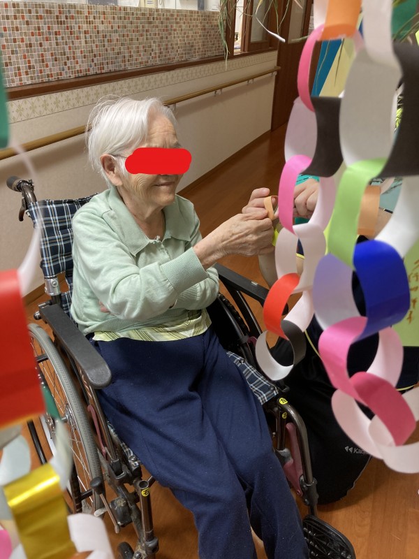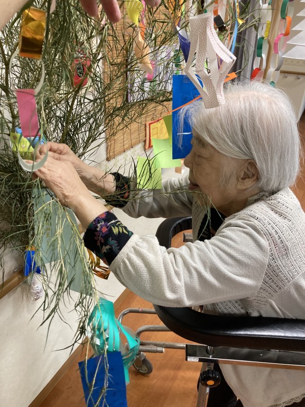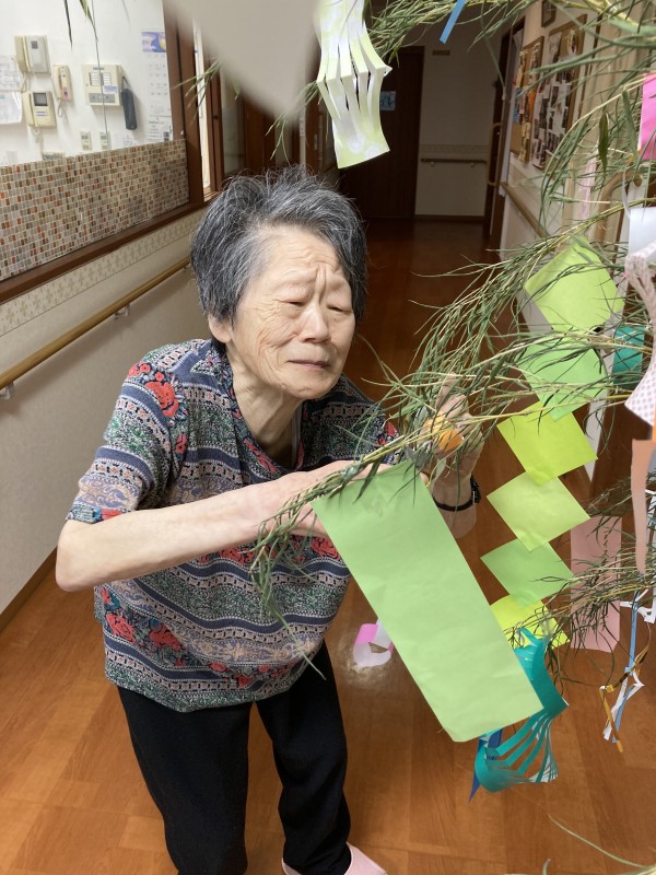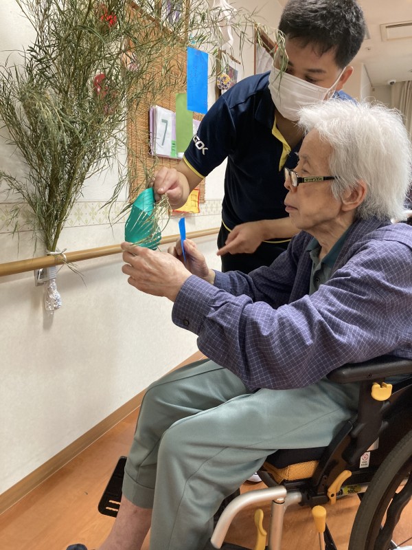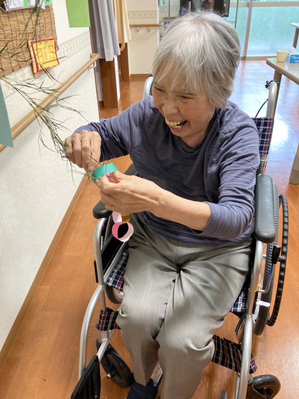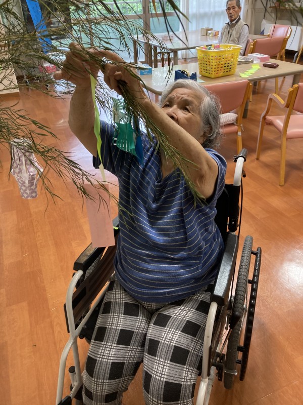 今回は前回レクで利用者様に短冊に願い事を書いて頂いたので「飾り付け」をしてもらいました!