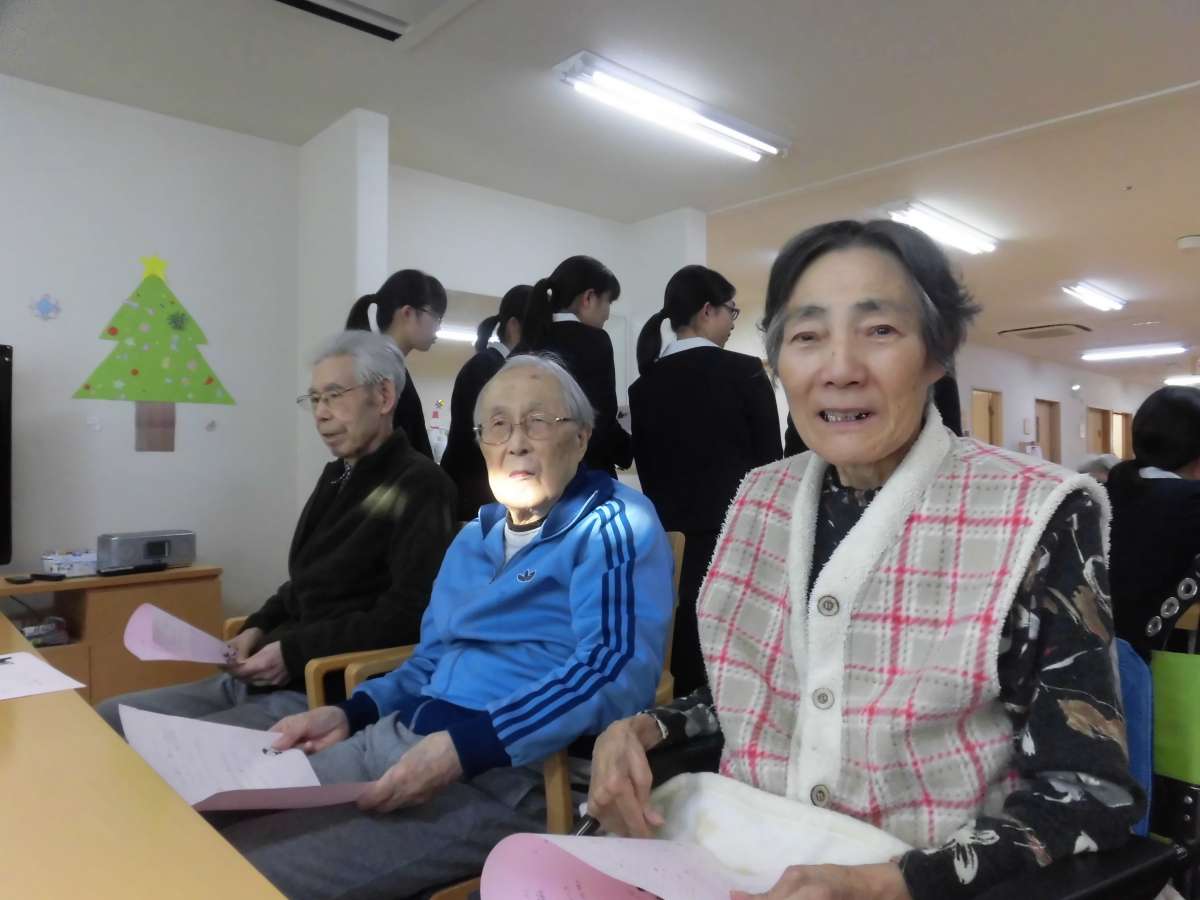 人生の大先輩とこれから様々な経験を積み重ねていく中学生の皆さん。初めての対面であり、短い時間ではありましたが、ご利用者様も生徒さんもクリスマスの思い出になったのではないかと思います。明の星の生徒の皆さん、本当にありがとうございました。
