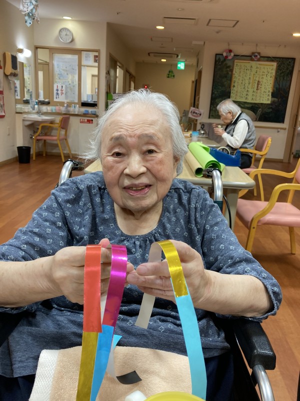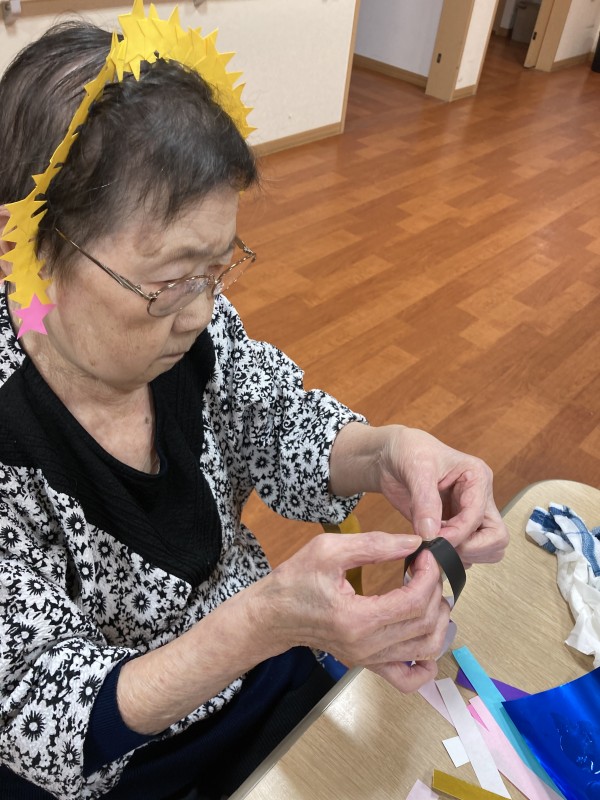 趣向を変えて、模造紙で書いた笹に飾りつけを行います。