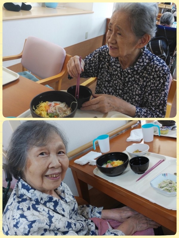 『おそうめん、久しぶりだわ!おいしいし、きれいね!』