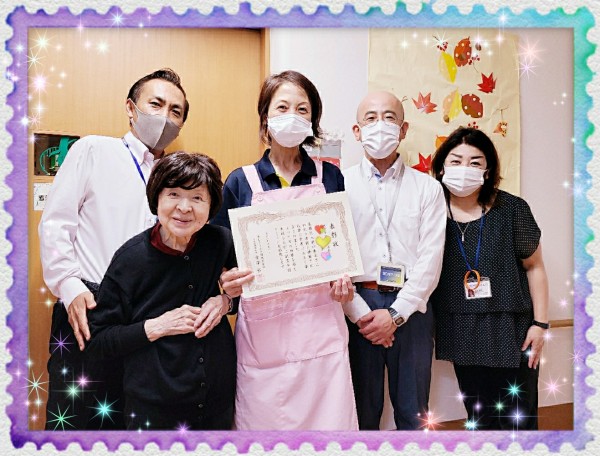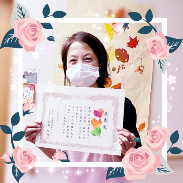 利用者様の前で表彰され、利用者様も皆さん拍手でお祝いして下さいました~♪