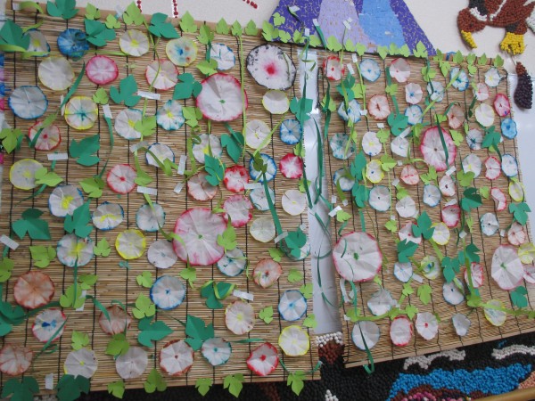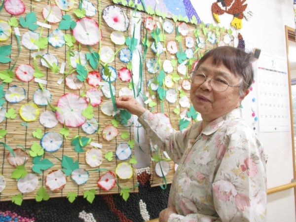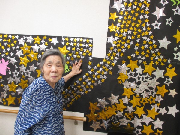 夏の(7月、8月)壁飾りが完成しました。皆様楽しそうに取り組まれていました。