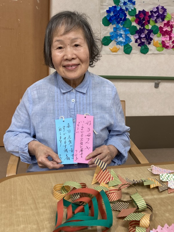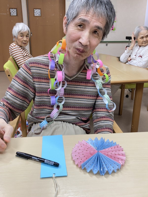 折紙で職員と一緒に作りました。