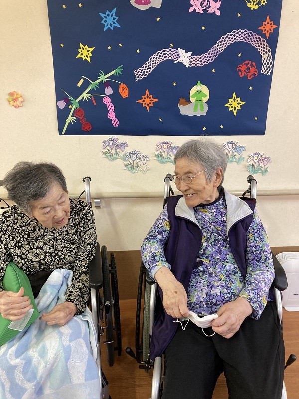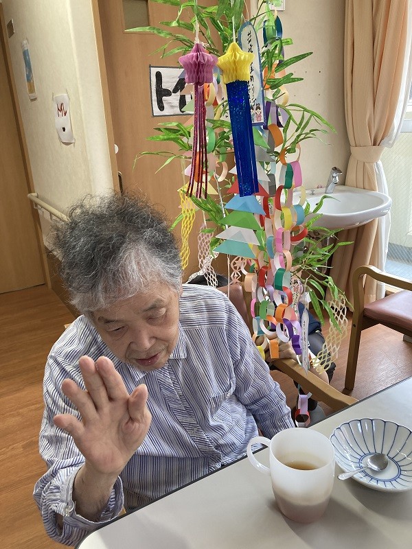 今日は!グループホームみんなの家 蕨の七夕祭りのブログです。7月7日七夕です。残念ながら梅雨の真っただ中、所によっては七夕の願いが届かず大変な事になっているところもあります。最近梅雨になると経験したことのない大雨になり土砂崩れや川の氾濫のニュースがあちらこちらで聞かれます。災害に巻き込まれないよう命を大切にしましょう。さて、7月7日みんなの家 蕨の皆様も七夕のお祭りをささやかながら行いました。マンゴープリンにフルーツを和え召し上がっていただきました。それから、皆様が書かれた願い事を発表しそれぞれの願いが叶うよう心から皆様願って居られました。七夕は、中国から伝わった行事で、本来は旧暦で行う行事です。2021年の旧暦の七夕は8月14日になります。ちょうどそのころは、天の川や織姫、彦星が奇麗に見える時期ですね。都内ではちょっと無理かな~!いくつになっても夜空を眺める余裕を持ちたいですね~。
