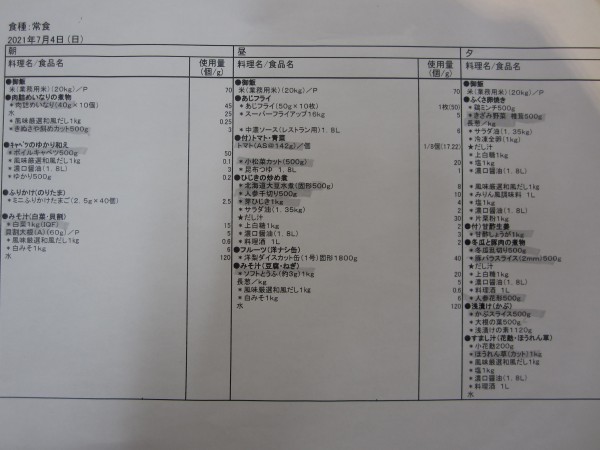 介護付有料老人ホームみんな家三橋6丁目の夕食は令和3年7月4日(日)曜日