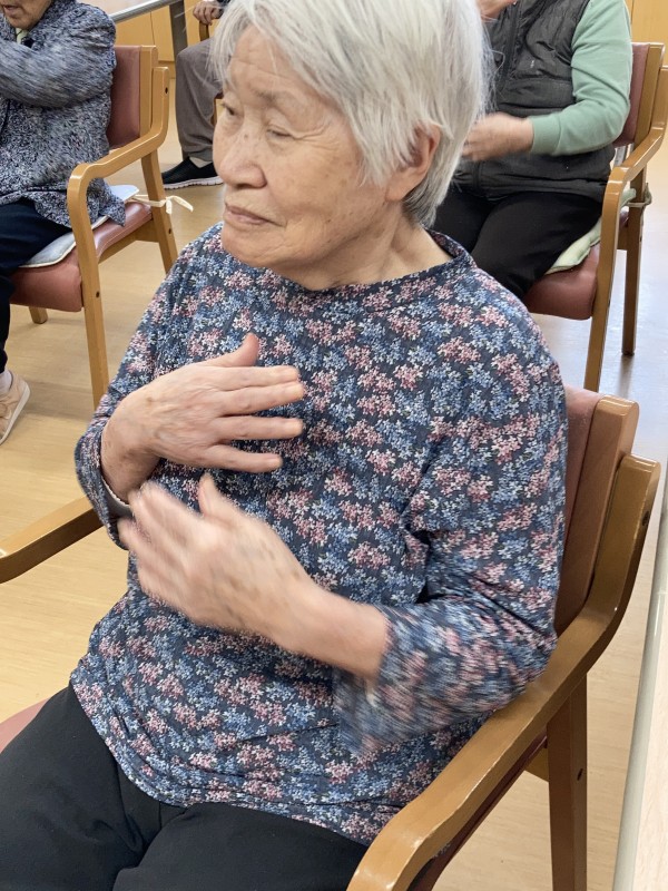 体操教室に参加して下さった後,身体が暑くなったI様,『暑いから脱ぐ(*'▽')』と言って上着を脱がれました。身体の中から温まった証拠ですね!
