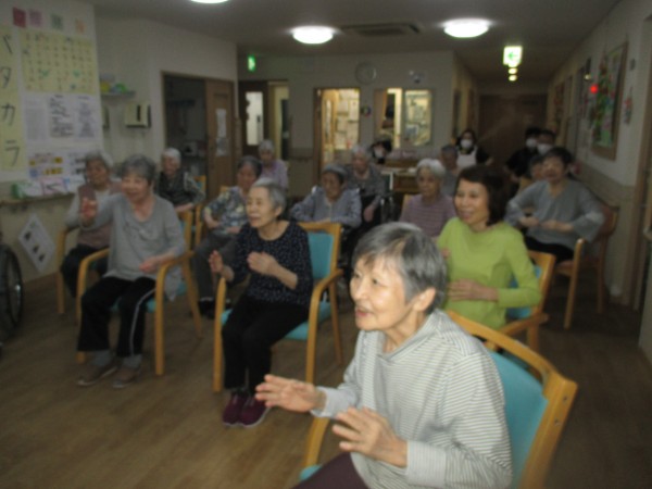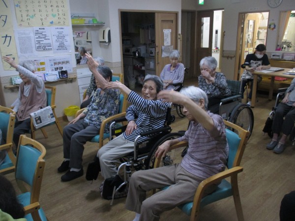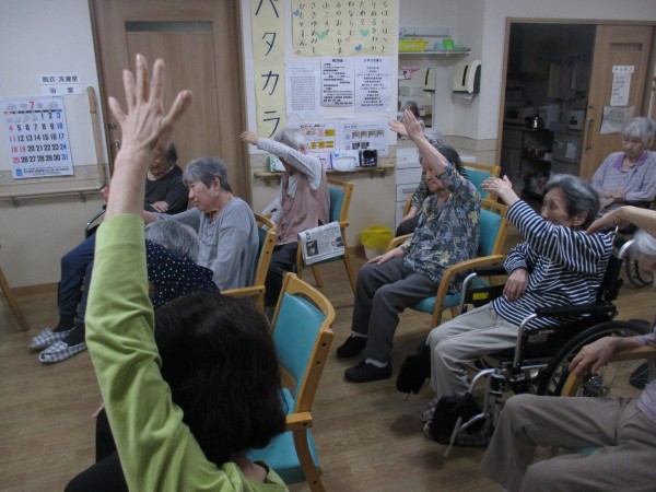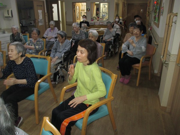 今回は特にハードの様でしたが、ご入居者様は声を出しながらいつも通りしっかり参加されていました。