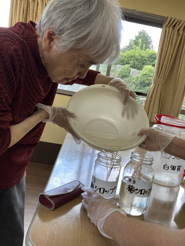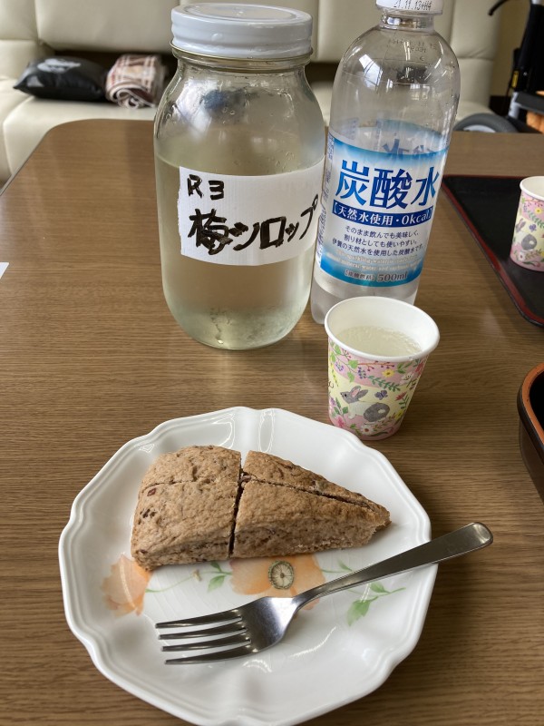 6月にご利用者様と一緒に作った梅シロップに炭酸水などを加えて