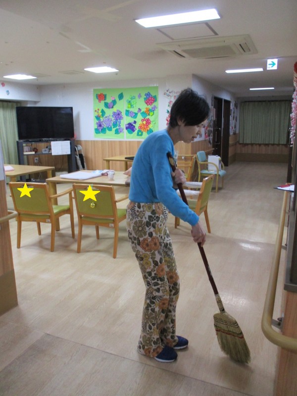 と気さくに職員に声をかけ、ササっと掃除をこなされるご利用者様です。