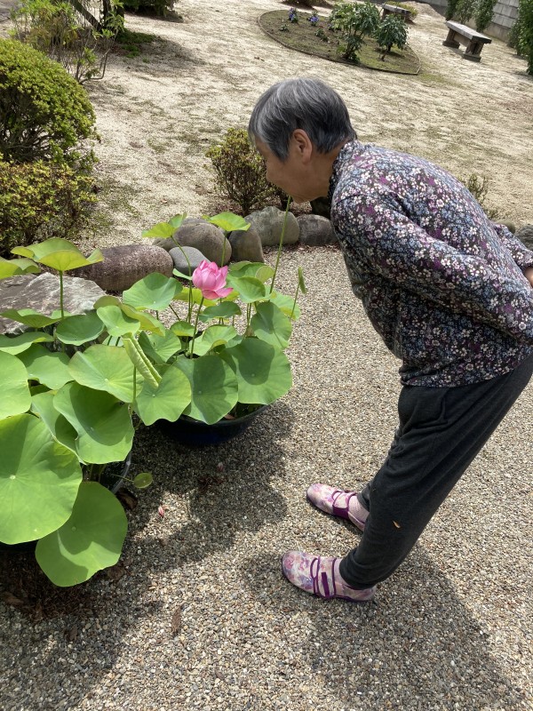 コロナウイルスの関係で,少人数でのお散歩でしたが,外の空気をたくさん吸って,綺麗な蓮の花を鑑賞させていただき,幸せなひと時でした。