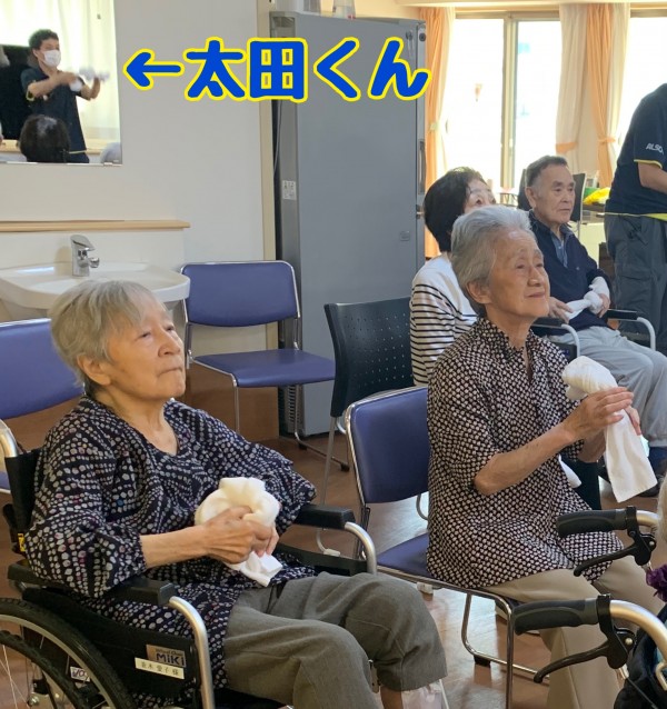 後ろにある鏡には、頑張って見本になる太田くんがちゃんと映ってます。