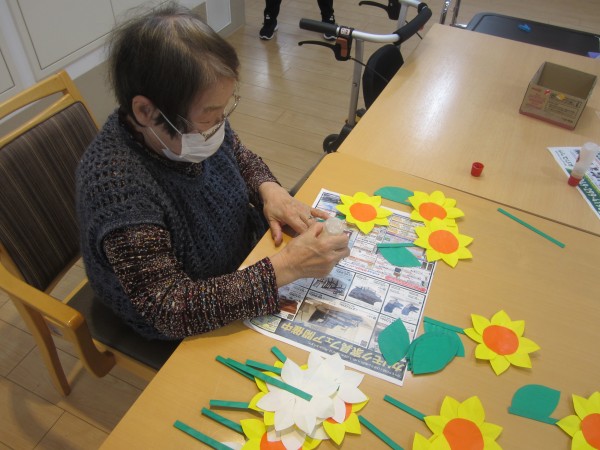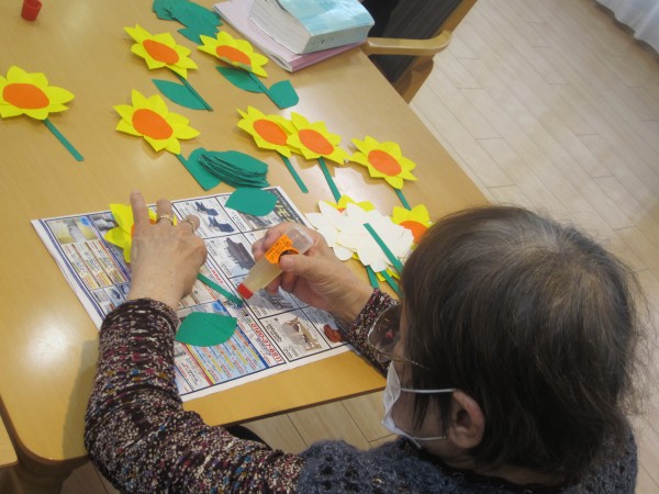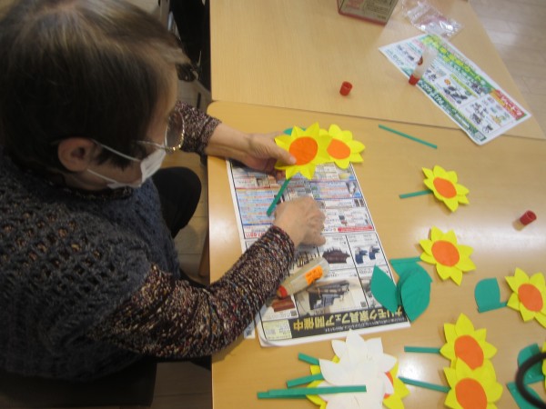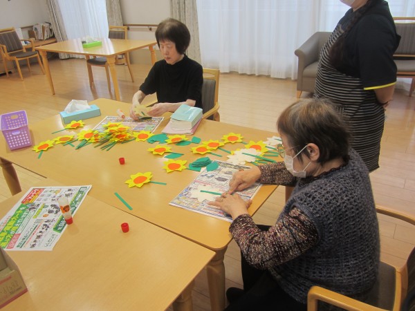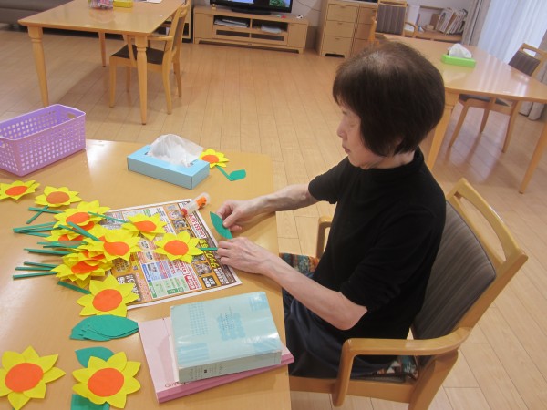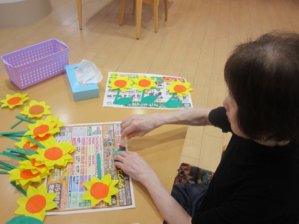 ★☆日本の夏を代表する「ひまわり」の折り紙、貼り付けレクリエーション♬ 『みんなの家・三橋6丁目』☆★