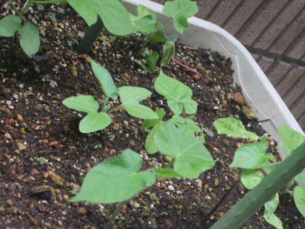 夜につるが伸びるので、夕方の水やりによっては、生長具合が違ってきます。