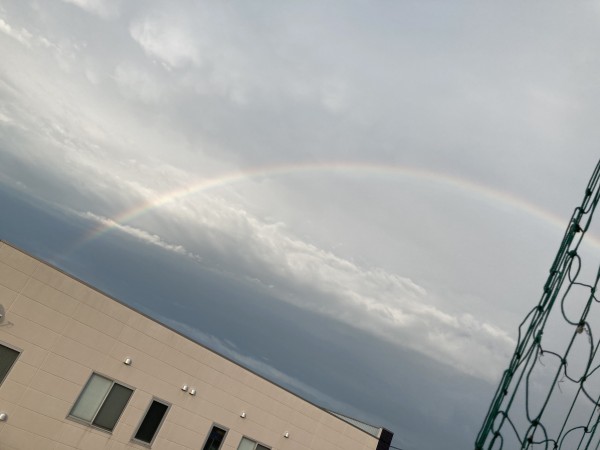 少ししてスタッフが、外を確認すると遠くに虹がかかっているのを見つけ、利用者様にもめったに見られるものでもないので見ていただき、一つの窓に肩を寄せ合うように集まられ一時の夢のような風景をご覧になられました。