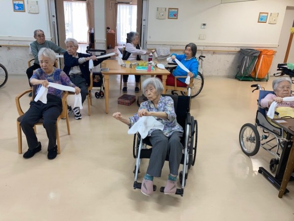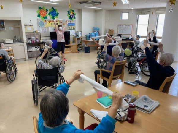 健康増進課の高橋先生が今日は訪問して下さり、エクササイズの指導をしてくれました(^o^)