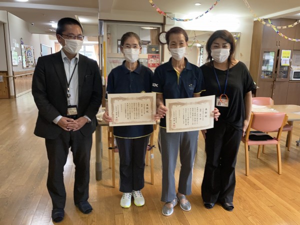 先日、長く介護現場で勤めている職員さんへ、感謝の永年勤続年表彰が行われました!