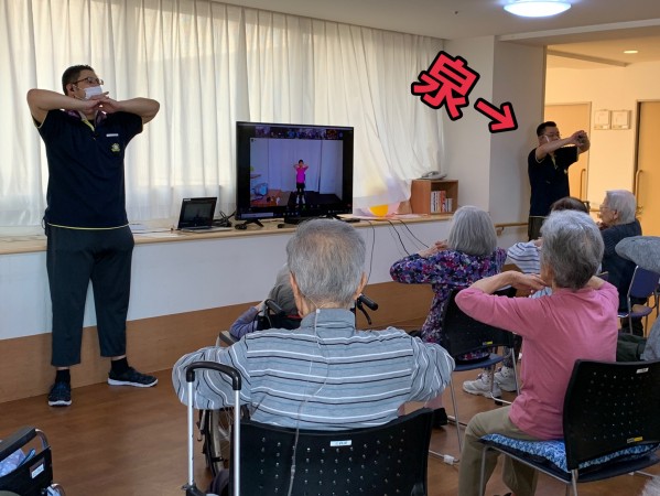 すこや家西尾久 入居者様は体操中。。職員は