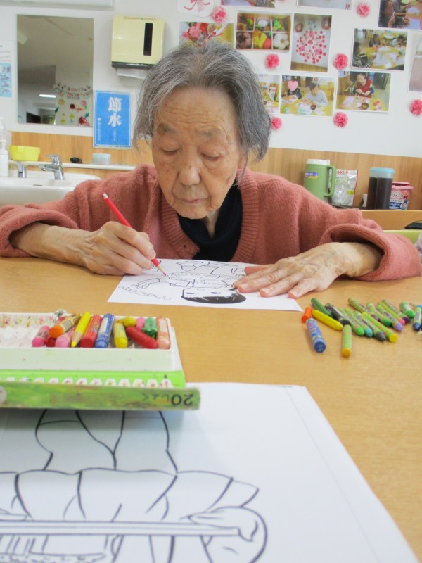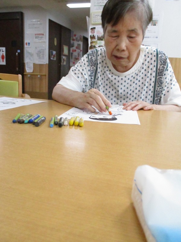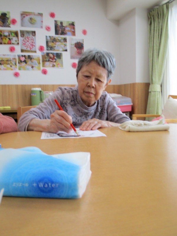 ある日の午前中、塗り絵に熱中される皆様です!